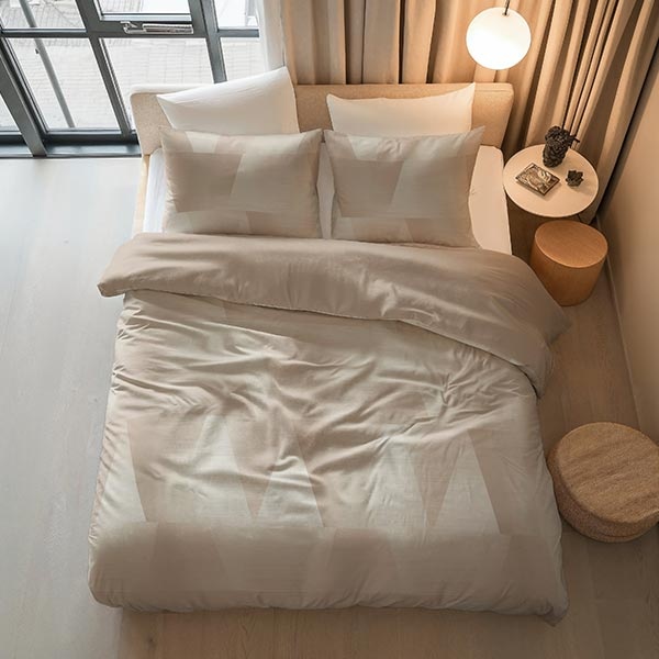 Strak, zacht en in balans. Het Blush Angles dekbedovertrek combineert subtiele driehoekvormen in warme zand- en beigetinten tot een rustig geheel.