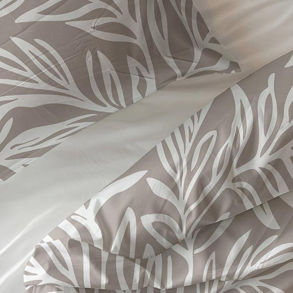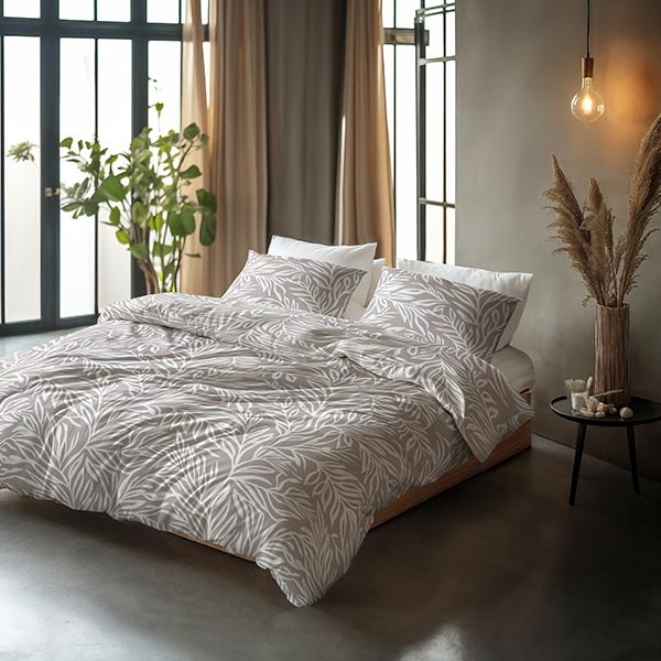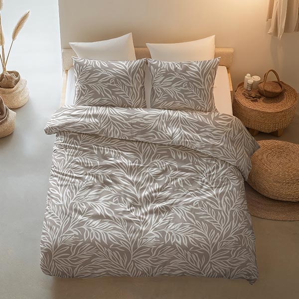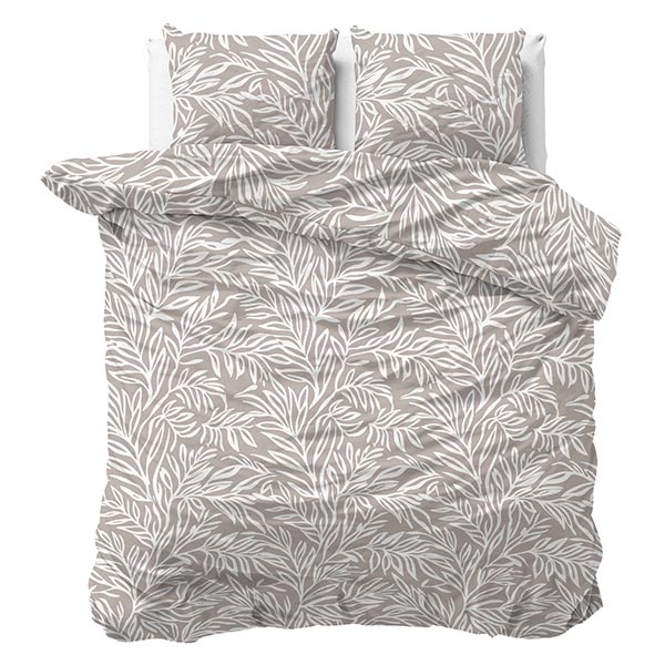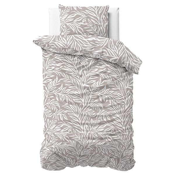 Het dessin van dit katoenen dekbedovertrek Breeze bestaat uit sierlijke bladeren die speels over het oppervlak zijn verdeeld. De combinatie van taupe en wit geeft het geheel een lichte, natuurlijke en rustige uitstraling.