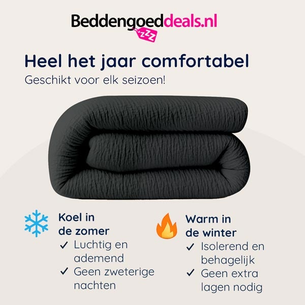 - Geschikt voor elk seizoen. Reguleert zowel vocht als temperatuur.