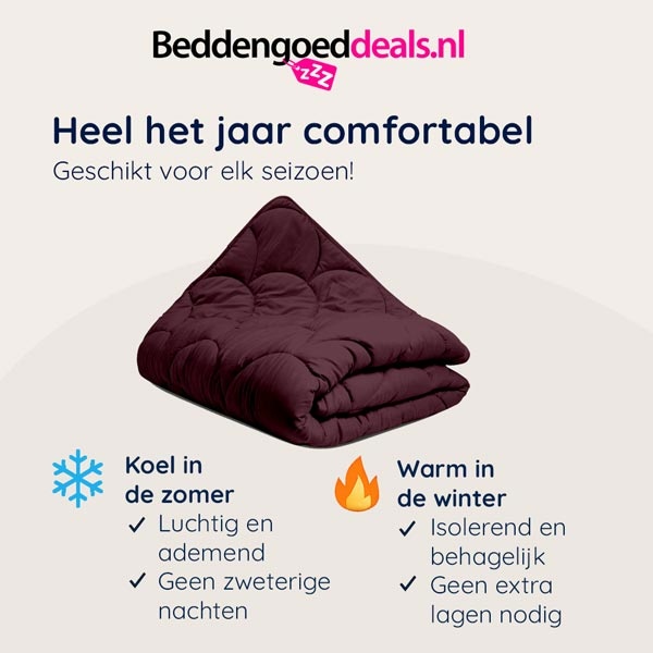 - Geschikt voor elk seizoen. Reguleert zowel vocht als temperatuur.