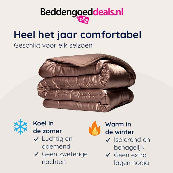 - Geschikt voor elk seizoen. Reguleert zowel vocht als temperatuur.