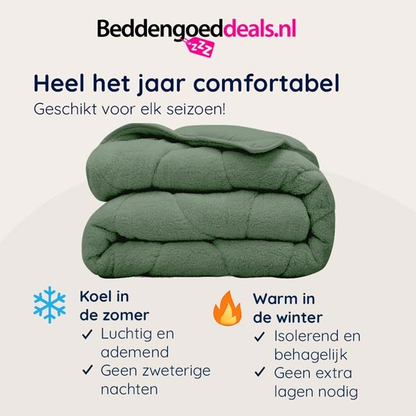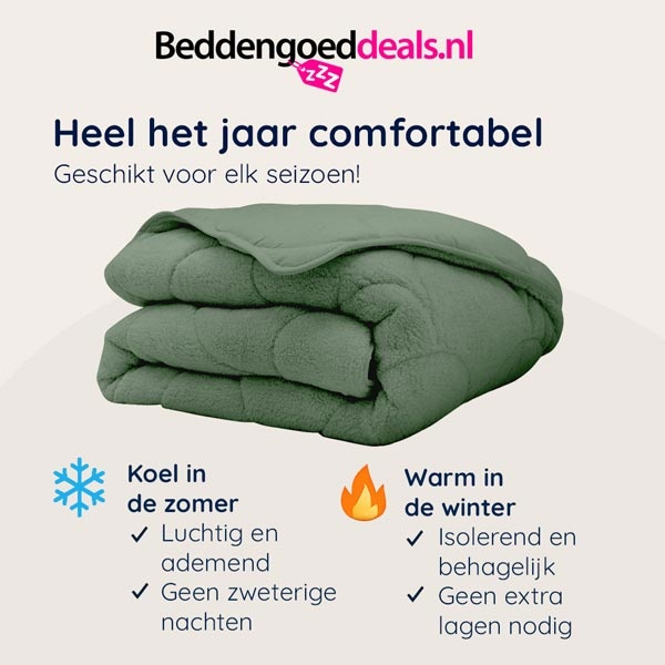 - Geschikt voor elk seizoen. Reguleert zowel vocht als temperatuur.