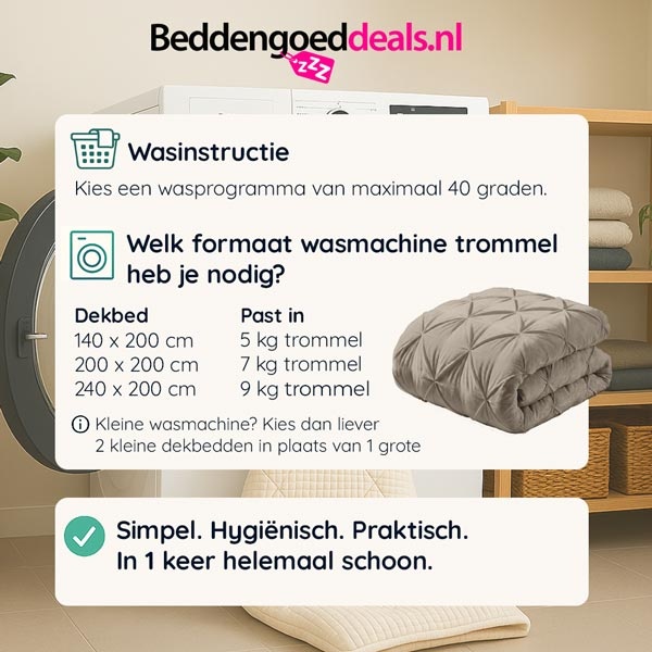 Kleine wasmachine? Kies dan liever 2 kleine wasbare dekbedden in plaats van 1 grote.