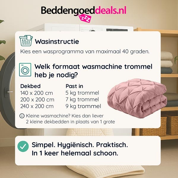 Kleine wasmachine? Kies dan liever 2 kleine wasbare dekbedden in plaats van 1 grote.