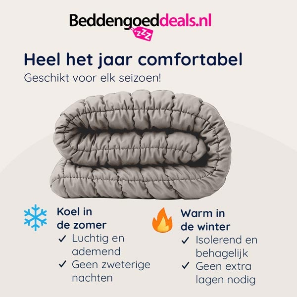 - Geschikt voor elk seizoen. Reguleert zowel vocht als temperatuur.