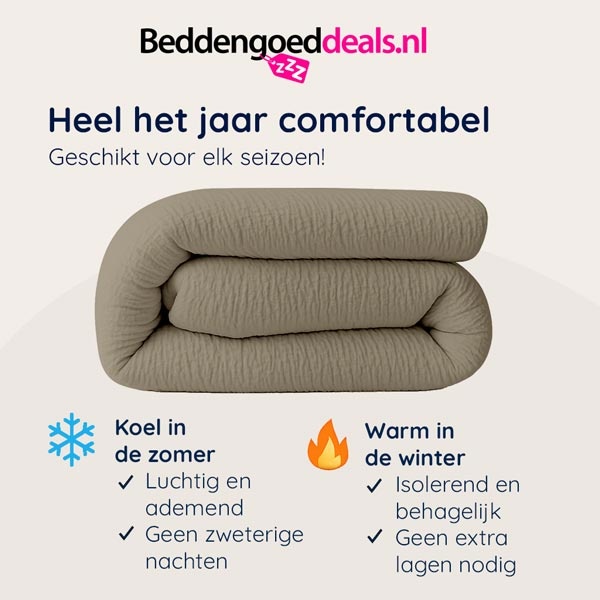 - Geschikt voor elk seizoen. Reguleert zowel vocht als temperatuur.