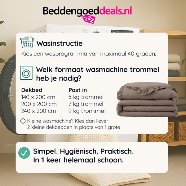 Kleine wasmachine? Kies dan liever 2 kleine wasbare dekbedden in plaats van 1 grote.