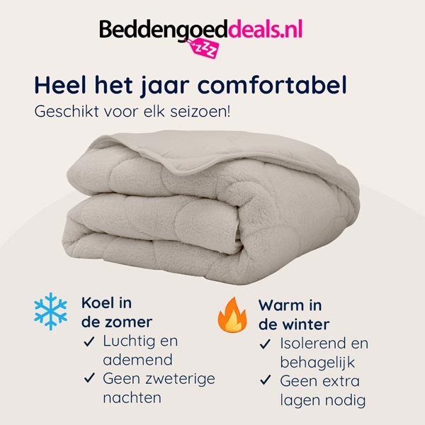 - Geschikt voor elk seizoen. Reguleert zowel vocht als temperatuur.