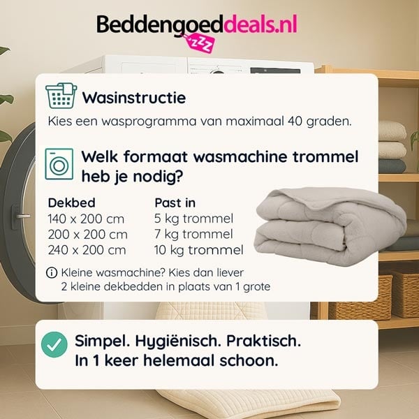 Kleine wasmachine? Kies dan liever 2 kleine wasbare dekbedden in plaats van 1 grote.