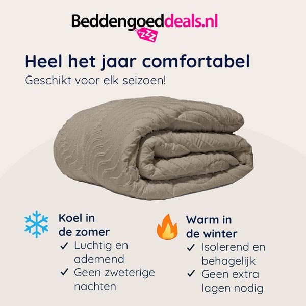 - Geschikt voor elk seizoen. Reguleert zowel vocht als temperatuur.