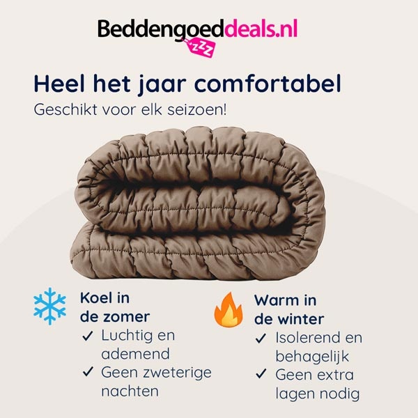 - Geschikt voor elk seizoen. Reguleert zowel vocht als temperatuur.