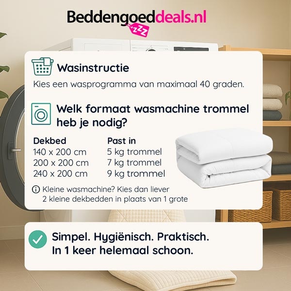 Kleine wasmachine? Kies dan liever 2 kleine wasbare dekbedden in plaats van 1 grote.