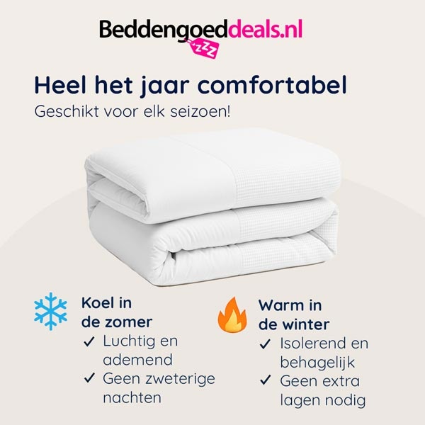 - Geschikt voor elk seizoen. Reguleert zowel vocht als temperatuur.