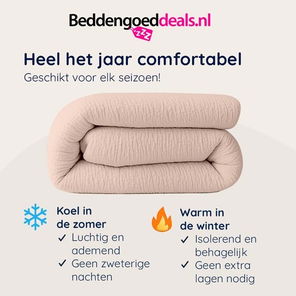 - Geschikt voor elk seizoen. Reguleert zowel vocht als temperatuur.