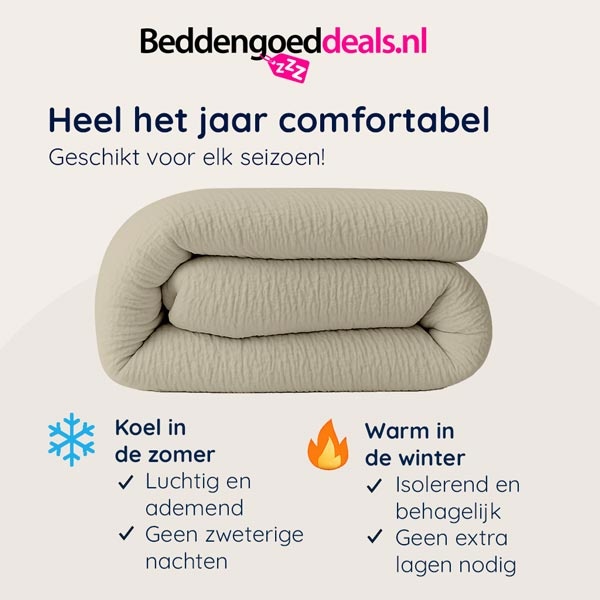 - Geschikt voor elk seizoen. Reguleert zowel vocht als temperatuur.