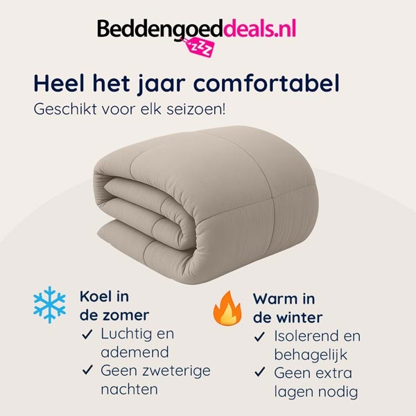 - Geschikt voor elk seizoen. Reguleert zowel vocht als temperatuur.