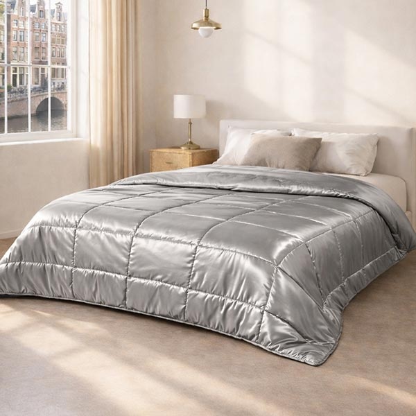 Dit zilvergrijze Satin Dekbed Zonder Overtrek is de perfect keuze voor wie houdt van gemak en luxe.