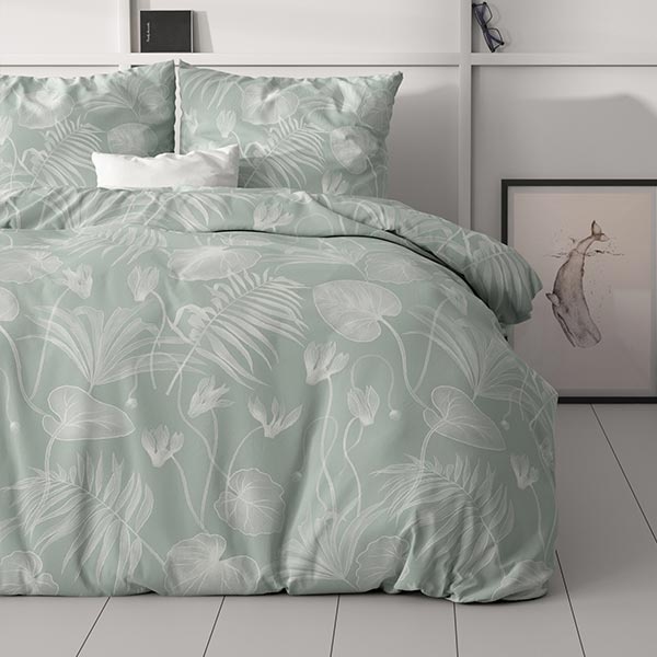 Dit Delight dekbedovertrek van Sleeptime geeft je slaapkamer een lichte, kalme touch. De combinatie van zachtgroene tinten met sierlijke witte bladmotieven creëert een frisse, ontspannen uitstraling.