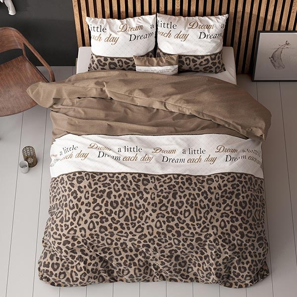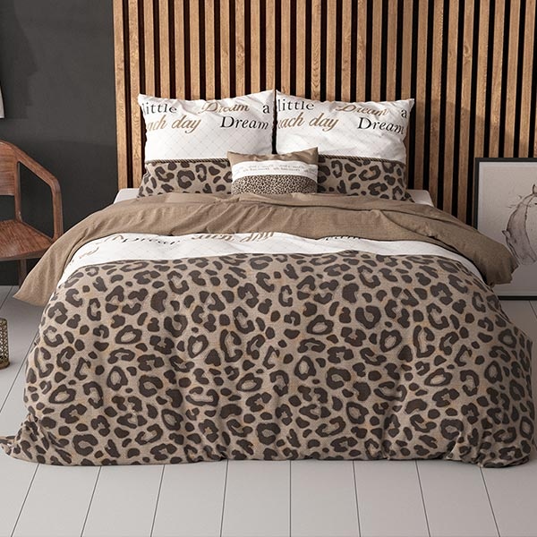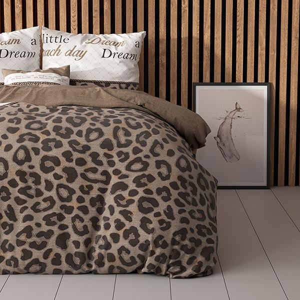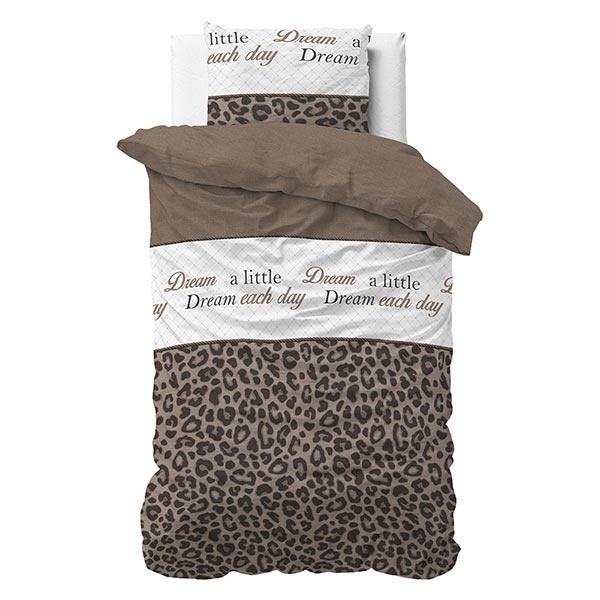Droom groots en voeg wat spanning toe aan je slaapkamer met het Dream and Sleep dekbedovertrek van Sleeptime. Het overtrek met een stoere panterprint en inspirerende tekst "Dream a little, dream each day" laat je elke nacht heerlijk wegdromen.