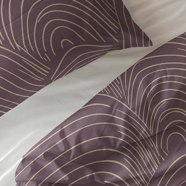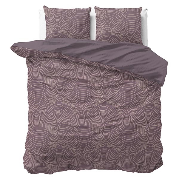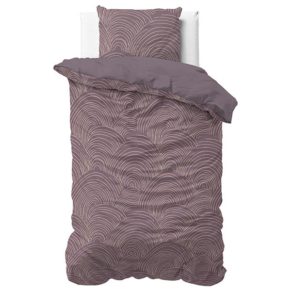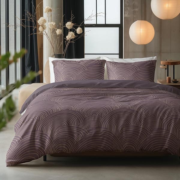 Het Dreamscape dekbedovertrek ademt rust en verfijning. De ronde lijnen vormen een harmonieus patroon dat doet denken aan zachte golven of glooiende heuvels. De warme paarstint brengt diepte en elegantie in je slaapkamer.