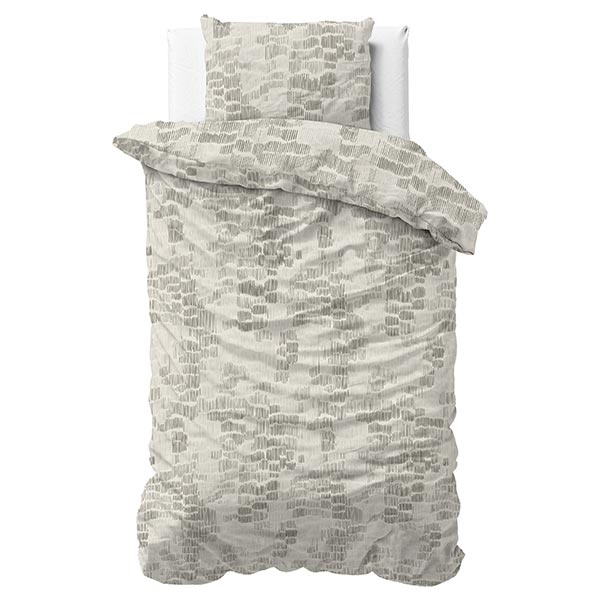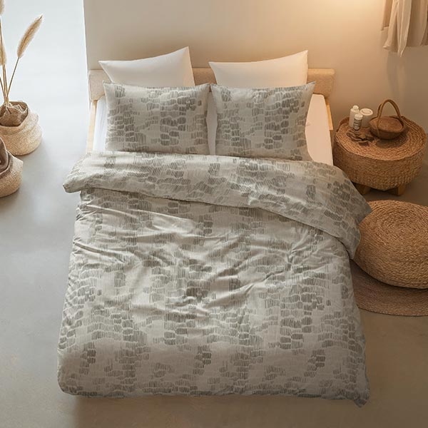 Het dessin van dit katoenen Drift dekbedovertrek bestaat uit een speels opgebouwd patroon van kleine, onregelmatige vormen. De zachte grijsgroene kleur zorgt samen met het subtiele contrast voor een rustige en eigentijdse uitstraling.