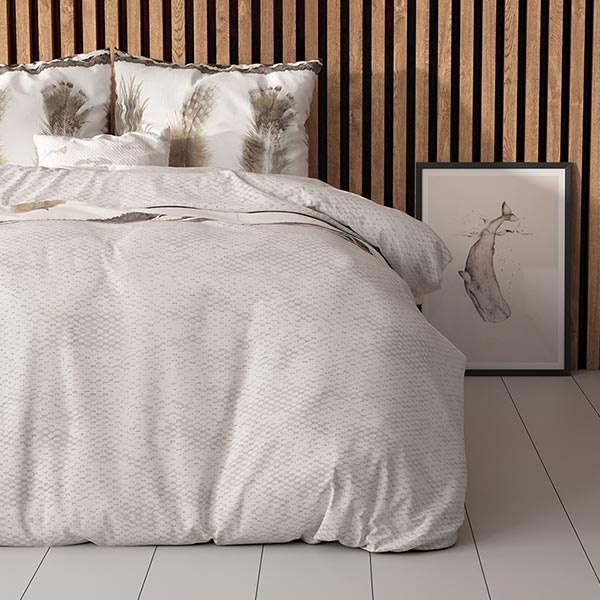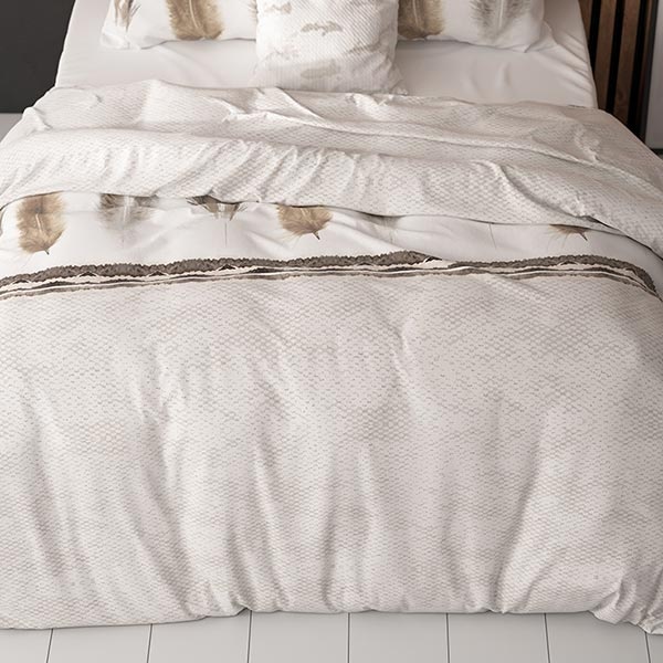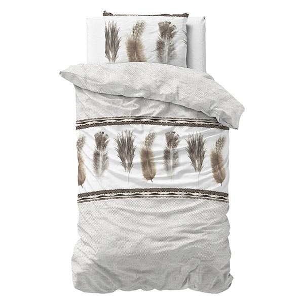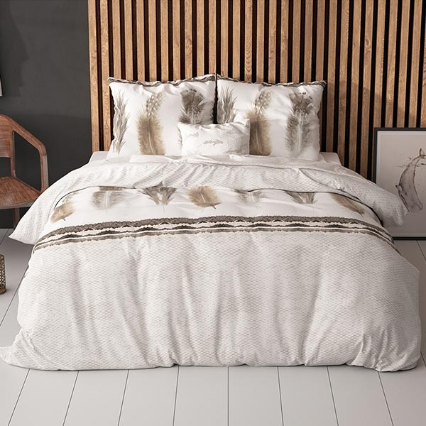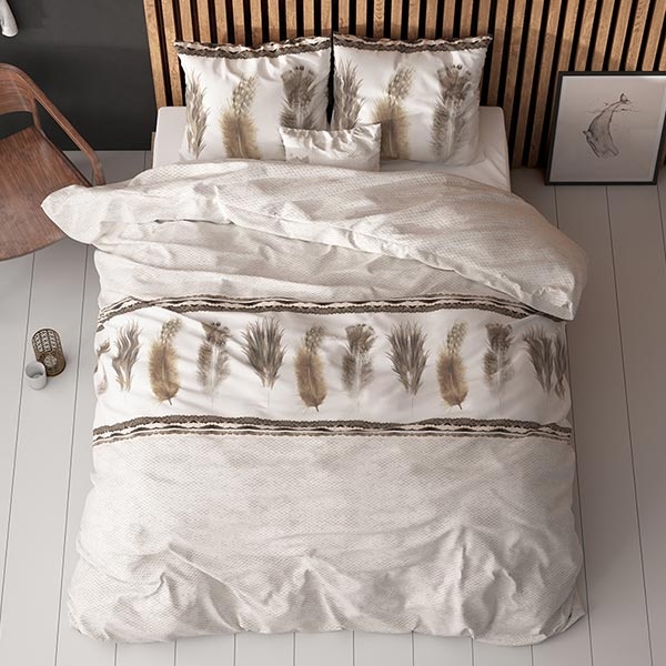 Droom heerlijk weg onder het Sleeptime dekbedovertrek Feathers 3 en laat de natuur je inspireren! Het sfeervolle dessin van mooie veren in natuurlijke tinten beige, bruin en grijs brengt harmonie en ontspanning in je slaapkamer. Kom tot rust en geniet van een goede nachtrust onder dit prachtige dekbedovertrek.