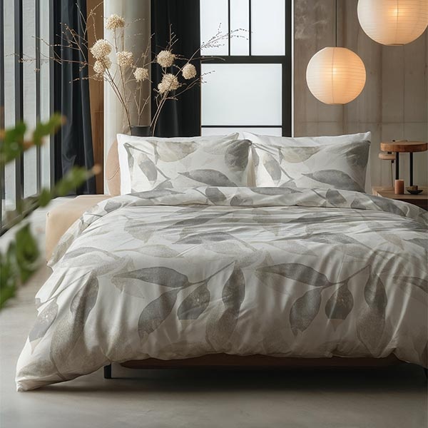 Dit Foliage dekbedovertrek combineert een speels bladerpatroon met een licht en luchtig kleurpalet. De zachte grijsgroene en zandkleurige bladeren lijken bijna te dansen over de lichte achtergrond. Een rustige blikvanger die moeiteloos in elk interieur past.