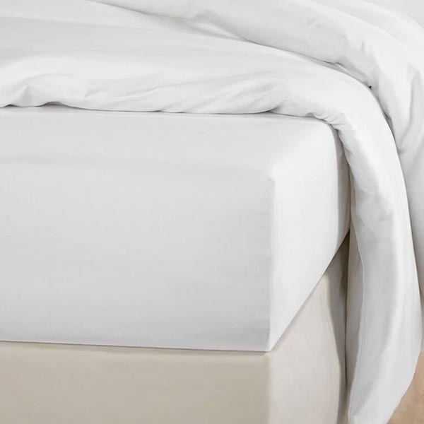 Enkel geweven katoenen hoeslaken van hoogwaardige kwaliteit.