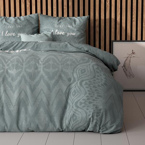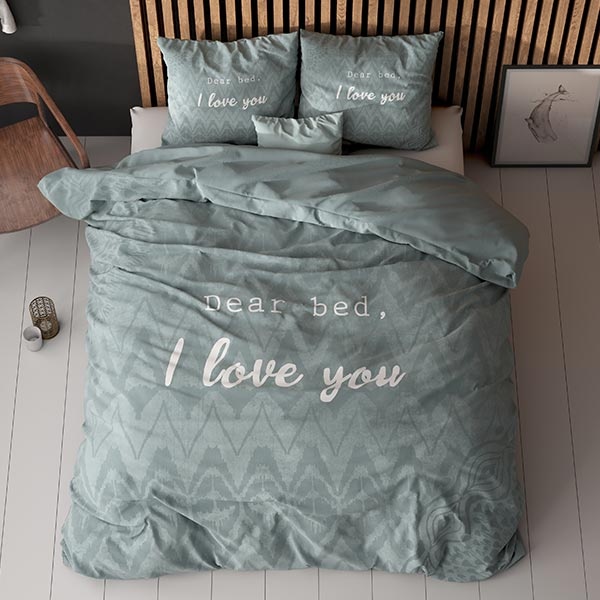 Met dit I Love Bed dekbedovertrek maak je van je bed de plek waar je écht niet meer uit wilt komen. De tekst “Dear bed, I love you” zegt precies wat je elke ochtend denkt. De zachte groentint gecombineerd met een subtiel zigzagpatroon zorgt voor een frisse en eigentijdse look.