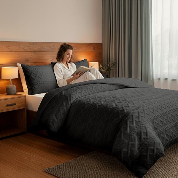 Jacquard Teddy - Antraciet Dekbedovertrek