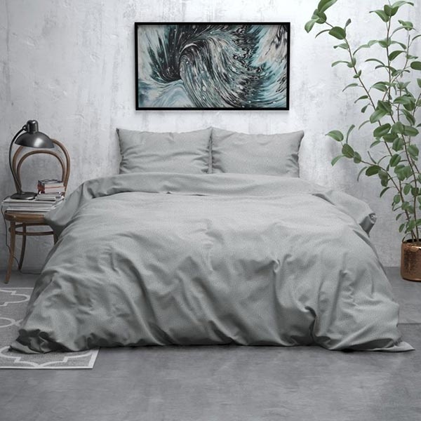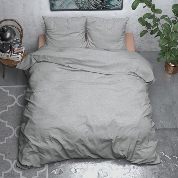Dit lichtgrijze flanellen dekbedovertrek is heerlijk verwarmend. Het heeft net iets extra's door een subtiel patroontje dat over het gehele overtrek verwerkt is.