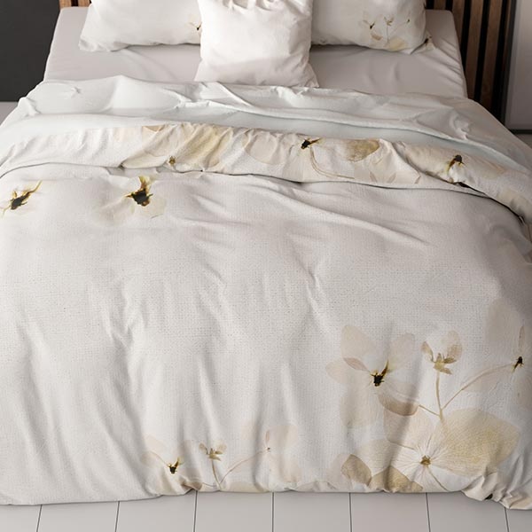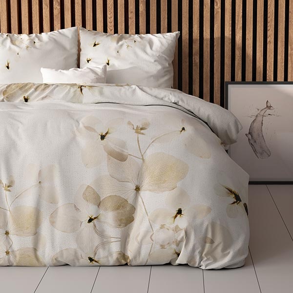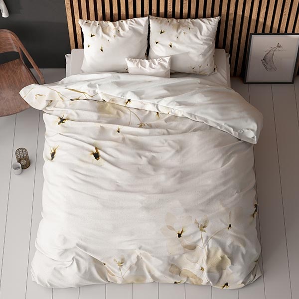 Subtiel, zacht en dromerig: dit Nature Heavenly dekbedovertrek met grote, licht crème bloemen straalt rust en elegantie uit. Perfect om je slaapkamer een rustige, natuurlijke sfeer te geven.