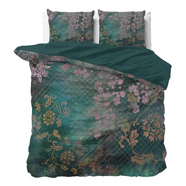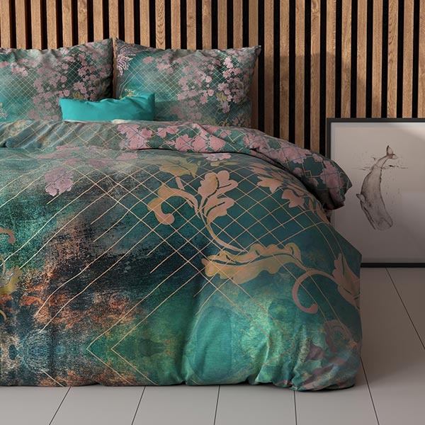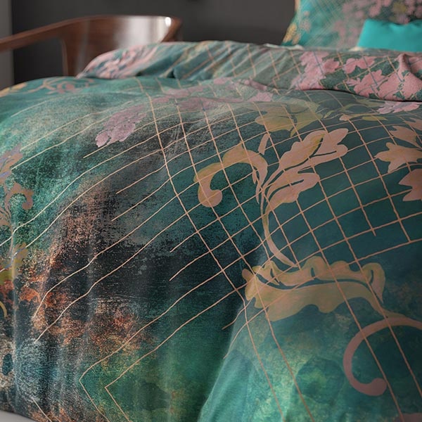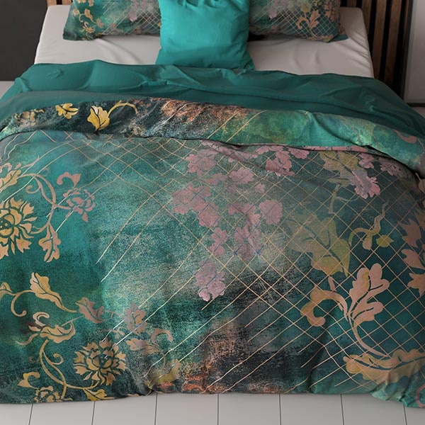 Een mysterieuze mix van diep groen, gouden ornamenten en zachte bloemenprints maakt dit Raddison Flower dekbedovertrek een echte sfeermaker. Het dessin voelt luxe aan en brengt een vleugje klassieke elegantie in je slaapkamer.