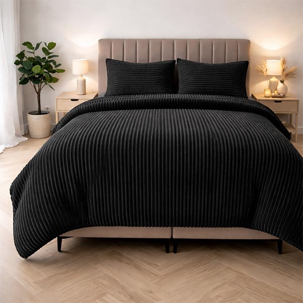 Rib Teddy - Antraciet/Zwart Dekbedovertrek