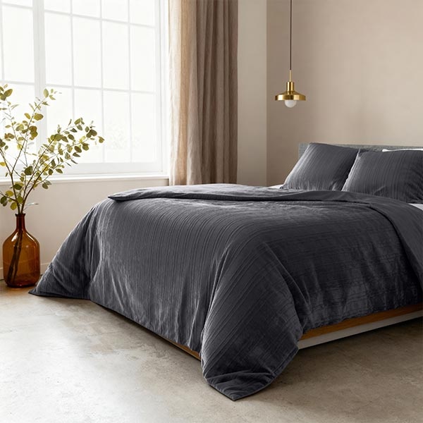 Dit Velvet Lining dekbedovertrek heeft een elegant dessin met verfijnde, verticale lijnen. De rustige belijning zorgt voor een strakke, moderne uitstraling met een vleugje zachtheid en luxe.